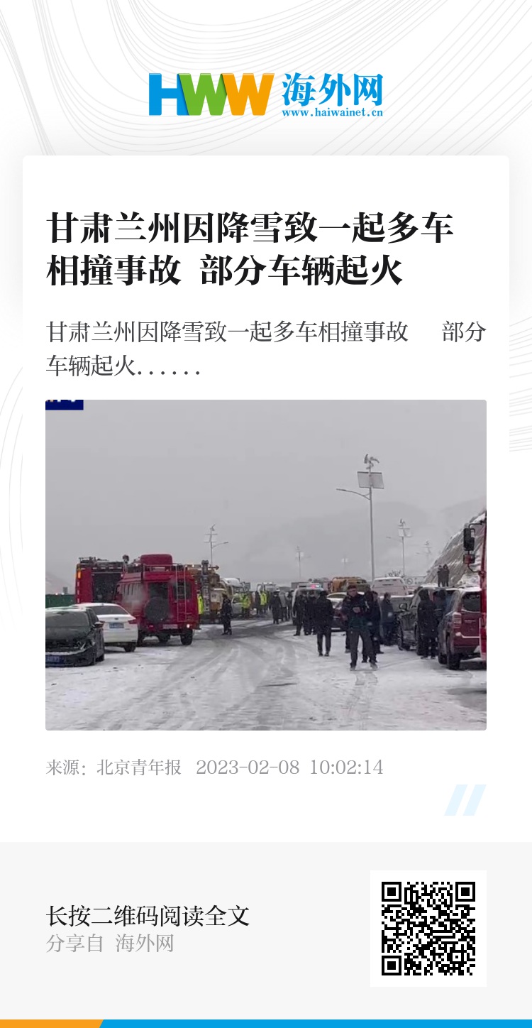 甘肃兰州因降雪致一起多车相撞事故 部分车辆起火