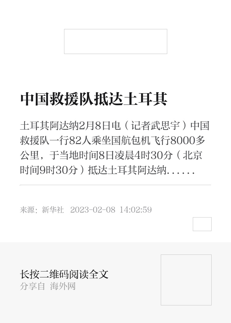 2月8日,中国救援队抵达土耳其阿达纳机场(手机拍摄)。新华社记者 武思宇 摄