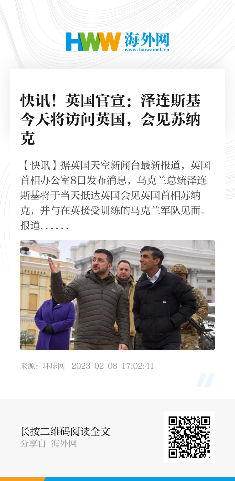 报道称,这是去年2月俄乌冲突爆发后泽连斯基首次访问英国。此前,泽连斯基只有过一次离开乌克兰的访问,去年12月他去了美国,并在返程时在波兰停留。