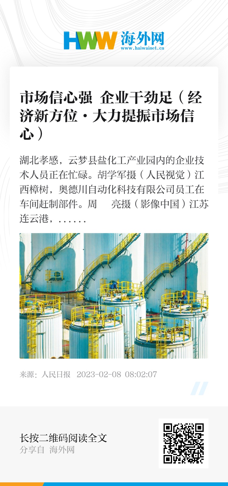 研发不停步,生产干劲足,开拓大市场……各类经营主体信心持续增强,努力为实现经济运行整体好转作出贡献。