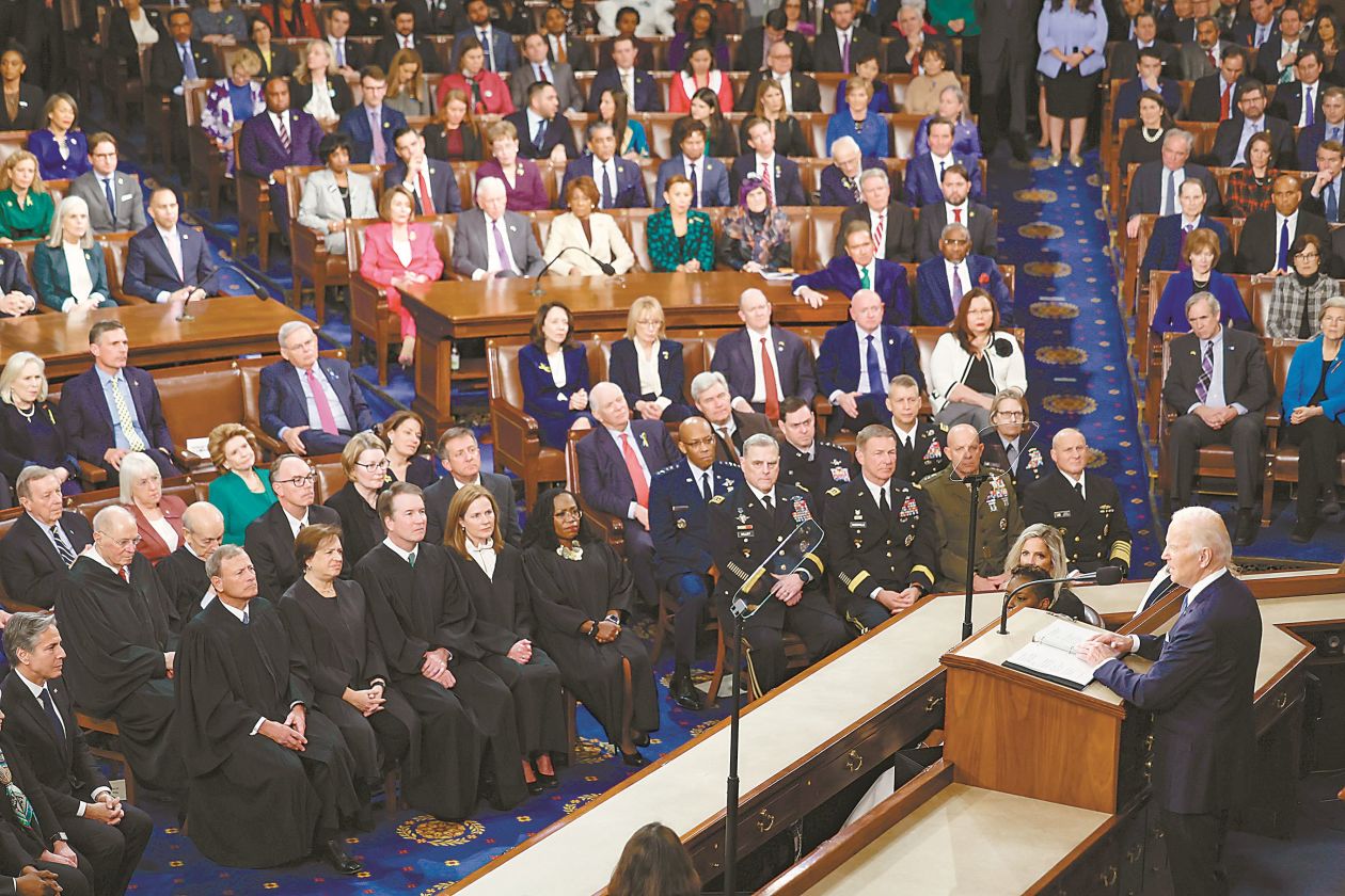 美国时间2月7日晚,美国总统拜登在国会大厦发表其任内第二次国情咨文演讲。 (视觉中国)