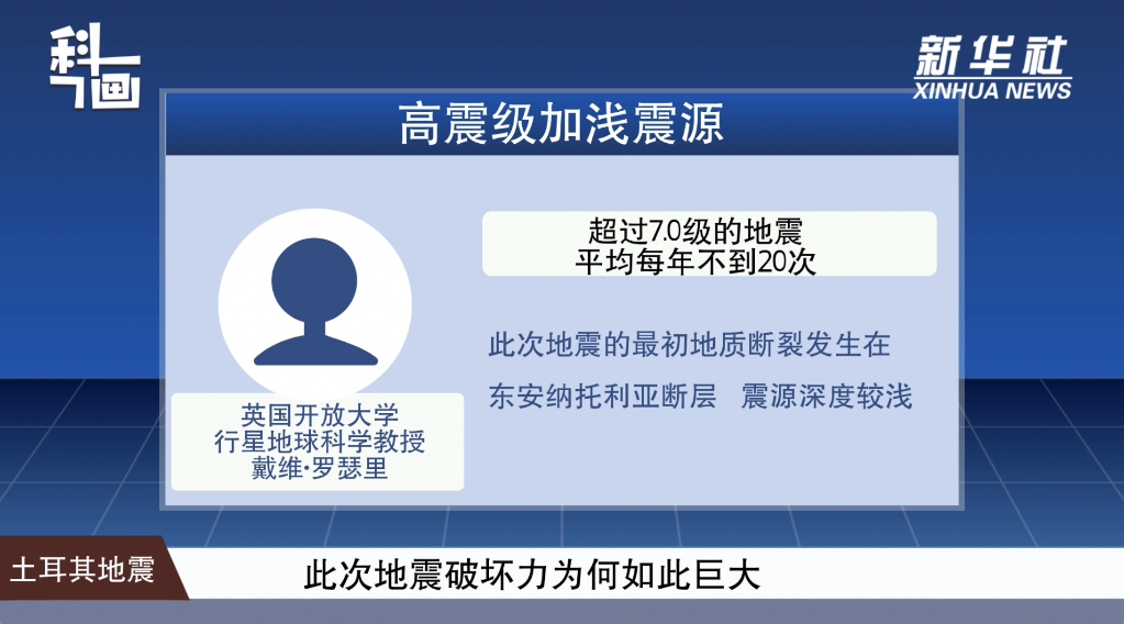 土耳其南部靠近叙利亚边境地区6日凌晨发生强烈地震。据土耳其和叙利亚政府及救援方面8日最新消息,土耳其南部靠近叙利亚边境地区的强震已致两国超过1.1万人遇难,约5.4万人受伤。此次地震破坏力为何如此巨大?
