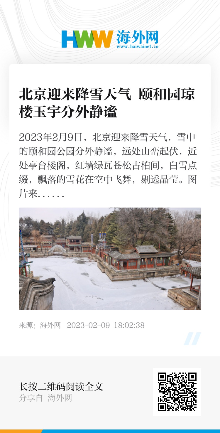 32556876,.北京迎来降雪天气 颐和园琼楼玉宇分外静谧,.2023-02-09 18:49:38,.204524,.庄鹏泽、李冉
