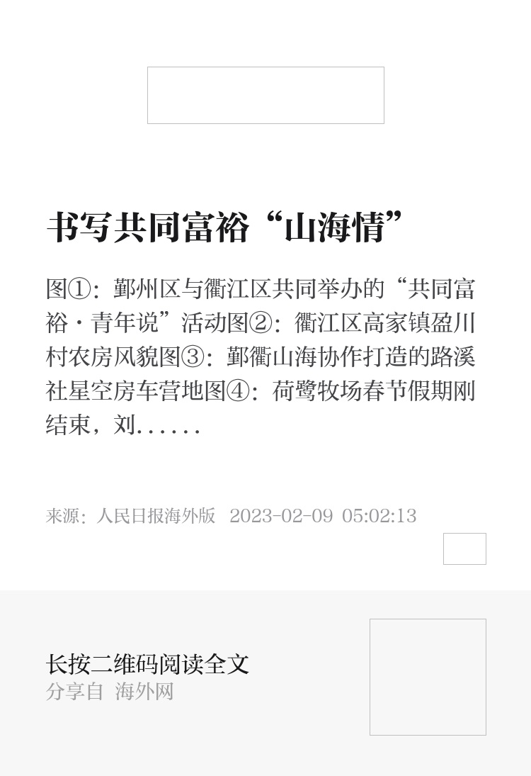 鄞州区是浙江东部滨海城市宁波的城市核心区,2022年全年地区生产总值排名省内县(市、区)第一;衢江区则位于浙江省西部、钱塘江上游,属于省内山区26县范畴。2012年,宁波市鄞州区和衢州市衢江区成为山海协作结对地区。共同富裕路上,一个不能少。自结对以来,鄞衢两地在产业合作、乡村振兴、消费帮扶、社会民生等多领域展开深度合作,结出了共同富裕的累累硕果。
