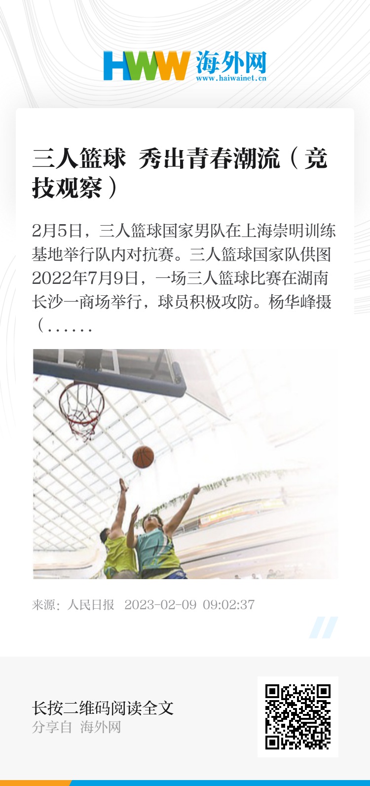 近年来,三人篮球在国内发展迅速,赛事蓬勃开展。相较于五人篮球,三人篮球在比赛规则和竞技特点上有明显不同,赛事也更加强调融入街头、紧跟潮流。这项年轻的运动有望吸引越来越多球迷的目光,发展前景广阔。