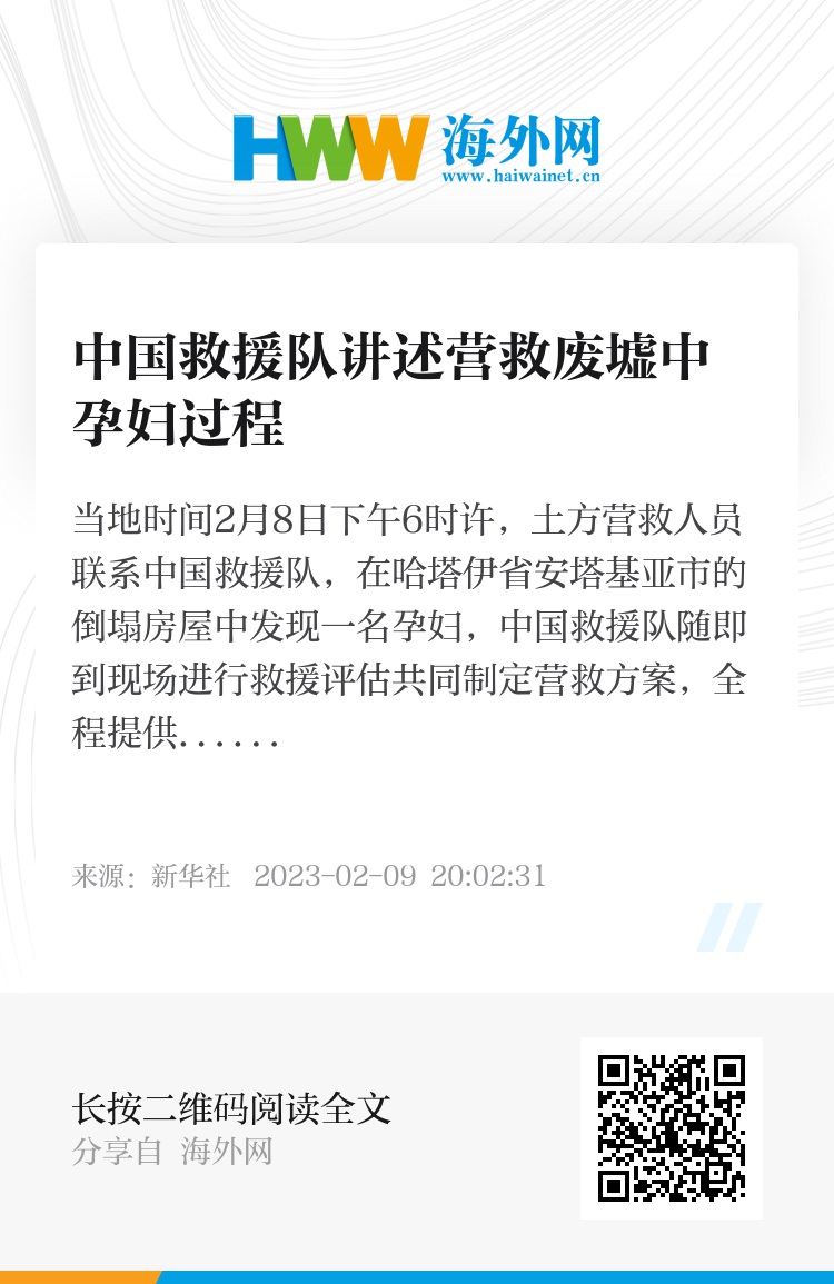 中土救援队通力合作,于当地时间2月9日凌晨1点30分成功从废墟中营救出该孕妇。中国救援队副队长讲述了营救过程。