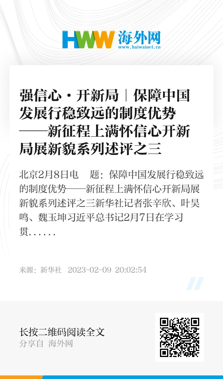 新华社北京2月8日电 题:保障中国发展行稳致远的制度优势——新征程上满怀信心开新局展新貌系列述评之三