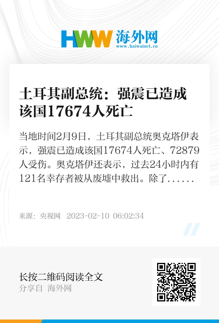 当地时间2月9日,土耳其副总统奥克塔伊表示,强震已造成该国17674人死亡、72879人受伤。