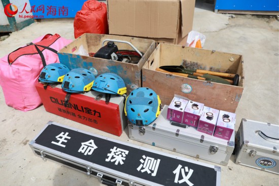 4名队员携带的专业救援设备。人民网 孟凡盛摄