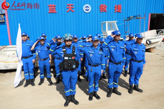 海南蓝天救援队(前排4位)集结,赶驰土耳其参与地震救援工作。人民网 孟凡盛摄