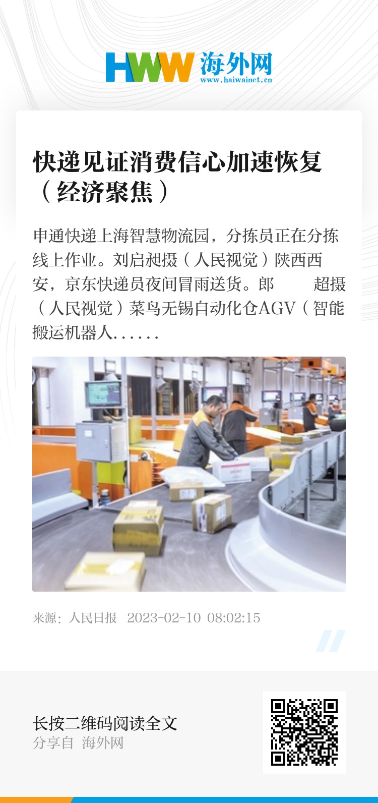 快递业联系千家万户、连通线上线下、畅通供需两端,行业再次刷新纪录,成为我国居民消费信心加速恢复,消费市场活力逐步复苏的最佳注脚。