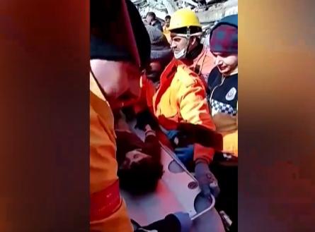 从废墟中抬出来时
