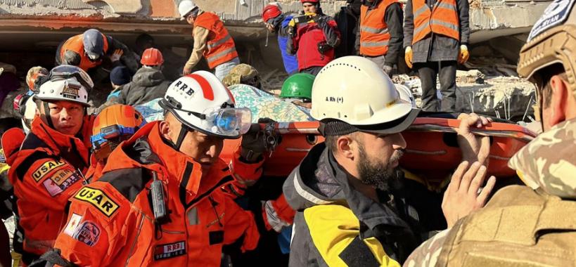 中国救援队与当地救援队通力合作