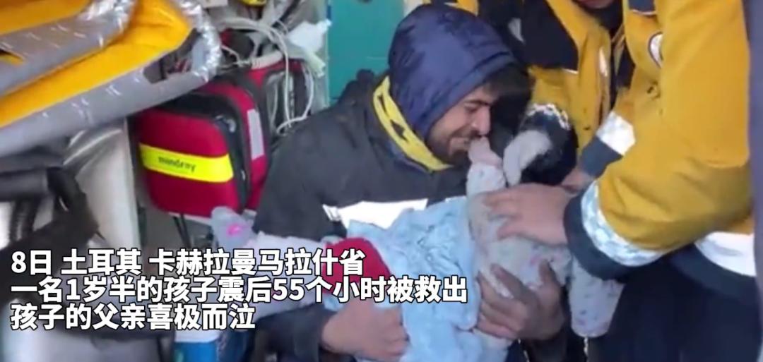 被抱出废墟后