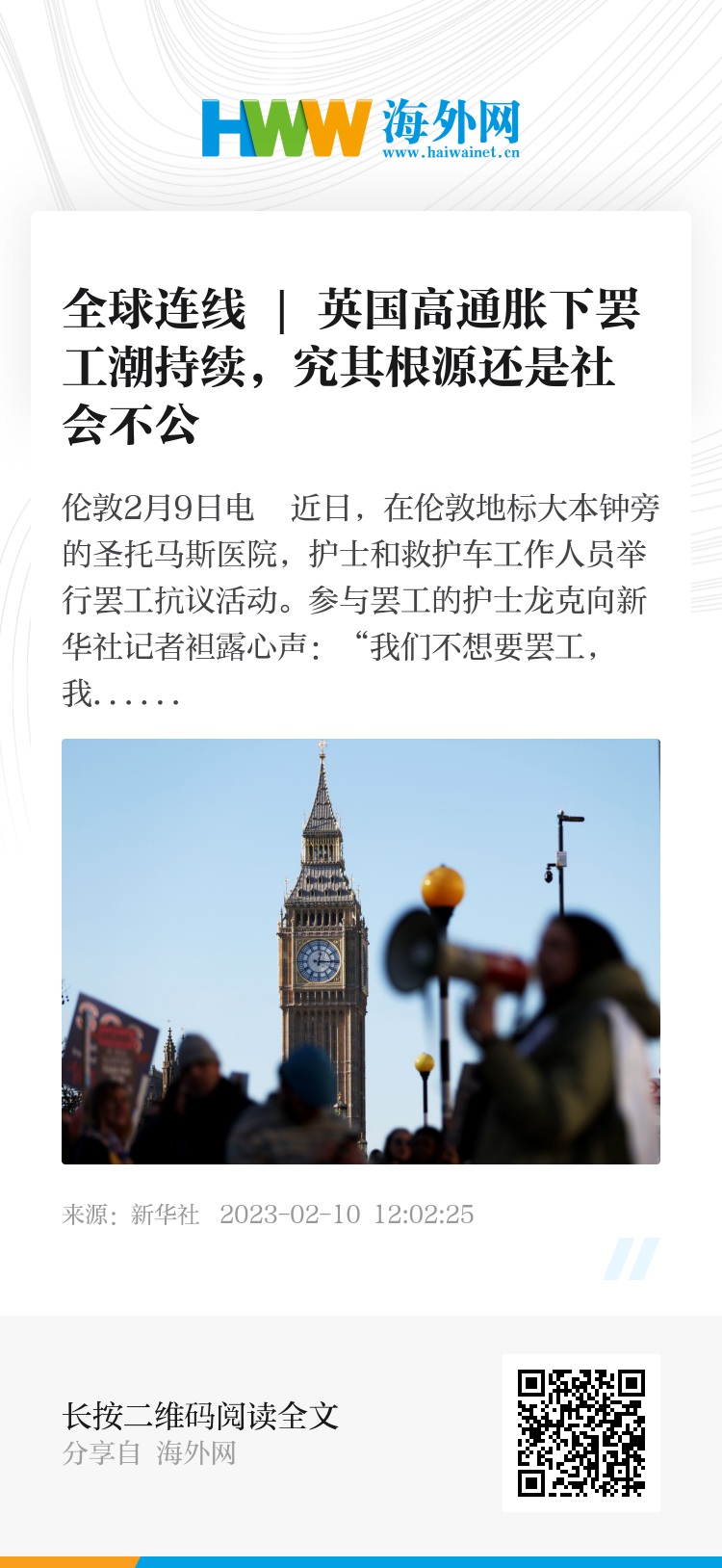 这场英国国民保健制度(NHS)成立75年以来最大规模的罢工只是席卷英国全国罢工潮的一个缩影。去年年底以来,英国各地各行业罢工活动此起彼伏、愈演愈烈。这场搅动英国上下的危机,表面上由通胀高企导致工资缩水引起,实际上却是近年来在英国政府错误政策助推下英国社会不平等持续加剧的结果,折射出“富者愈富、贫者愈贫”的严酷现实。