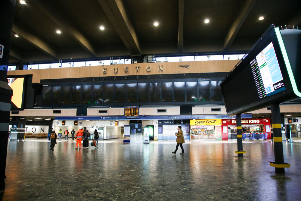 2月1日,在英国伦敦,人们行走在空荡的尤斯顿火车站内。当日,约50万英国教师、火车司机和公务员举行罢工,要求增加薪酬。新华社发