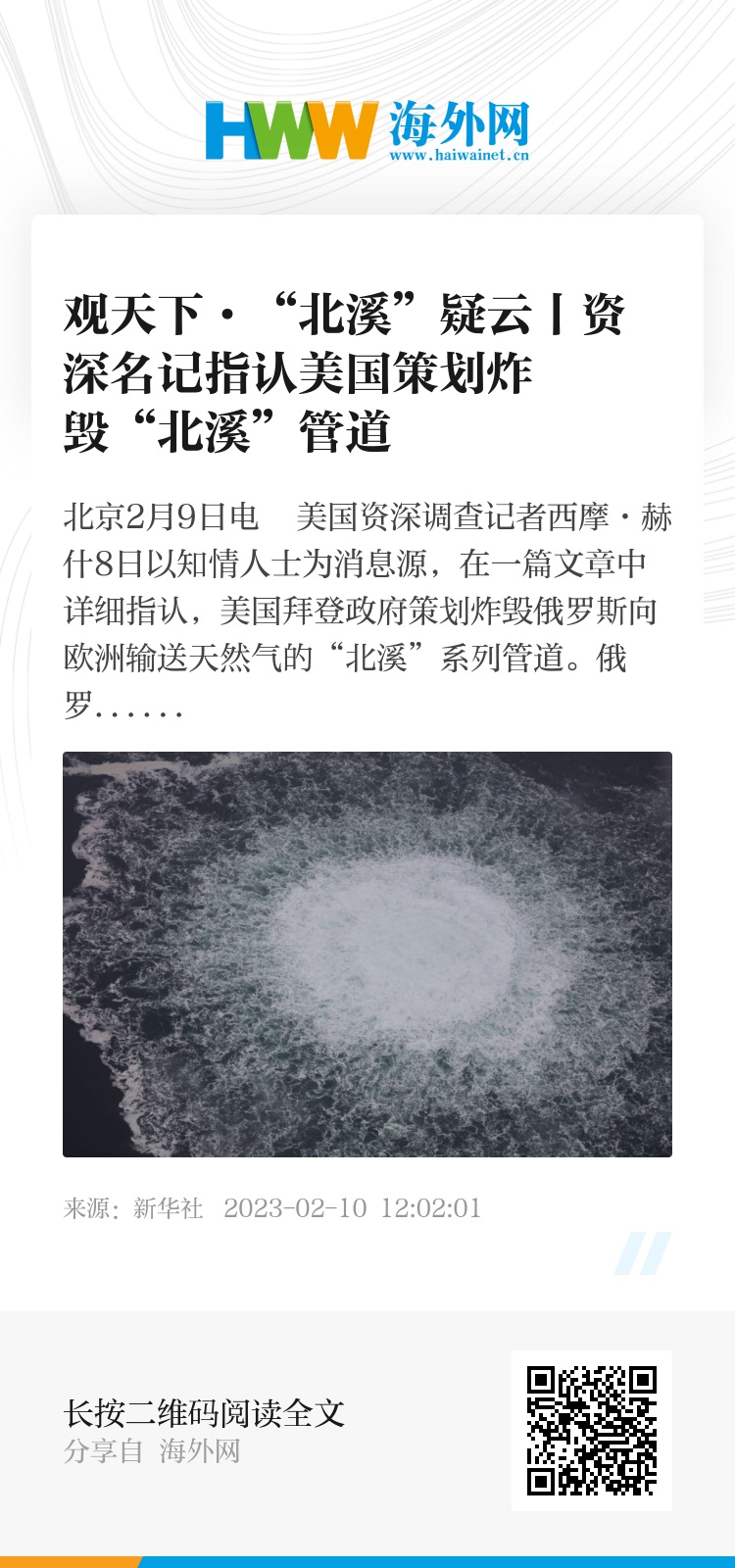 就赫什这篇文章,俄罗斯驻奥地利大使德米特里·柳宾斯基8日在社交媒体写道,西方国家就“北溪”事件调查集体闭口,是为掩护“人尽皆知”的破坏者。