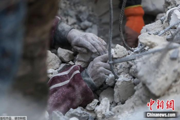 中新网2月10日电(何路曼)过去两天来,因为没有所需的物资和设备,叙利亚一个村庄中的男子伊布拉欣一直在用双手挖掘瓦砾堆。他有30名亲属在6日土叙边境两次强震发生后,下落不明。