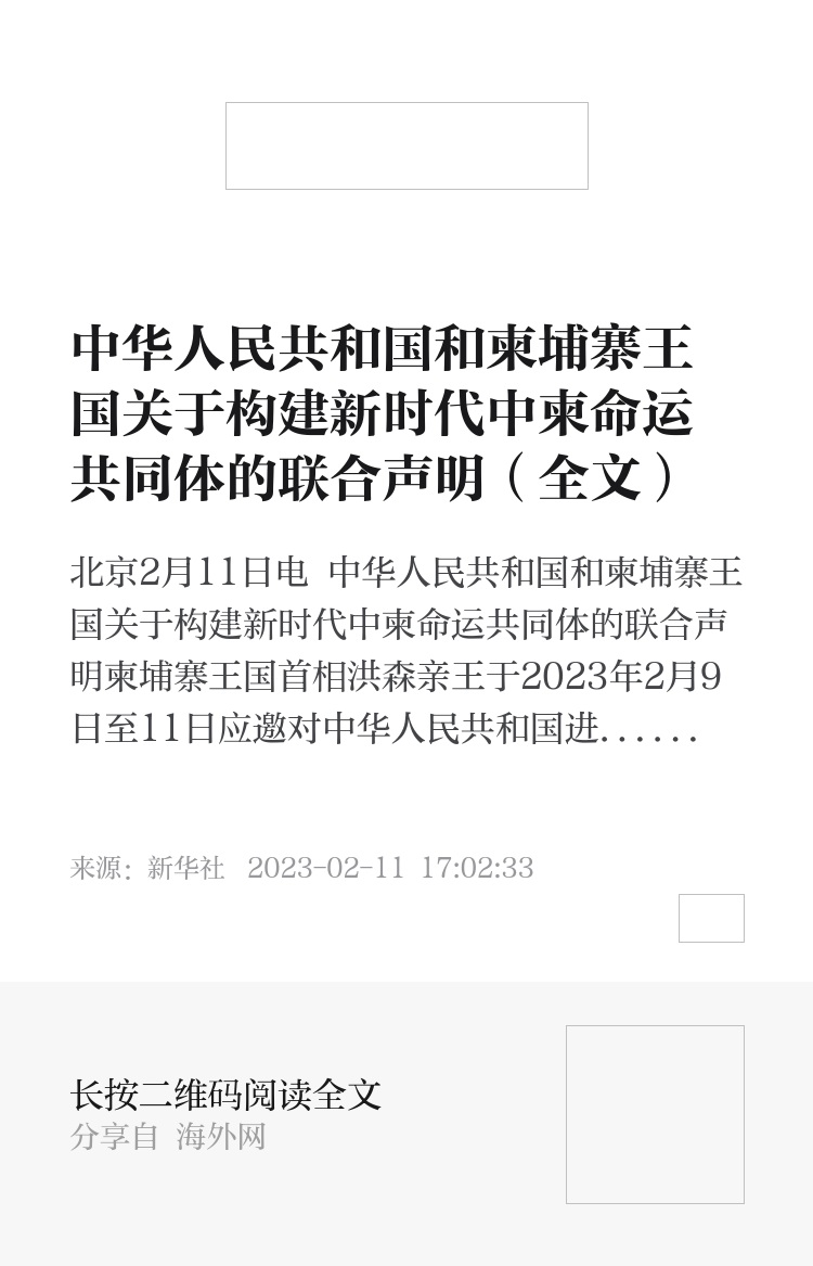 新华社北京2月11日电 中华人民共和国和柬埔寨王国关于构建新时代中柬命运共同体的联合声明