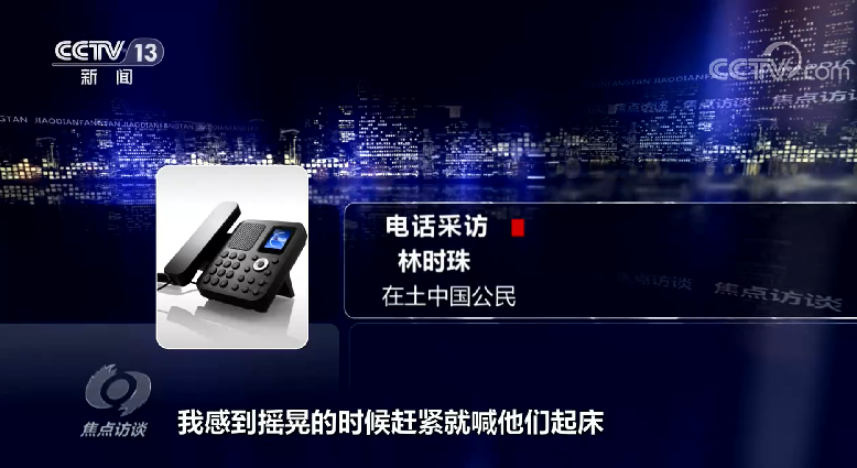林时珠:“我们水没有,食物没有,那时候有多绝望。在你遇到困难的时候,能向祖国求助,我们觉得大使馆是非常非常关心我们的。我们虽然是在土耳其,但是从来没有远离祖国,祖国就一直在我们身边。”