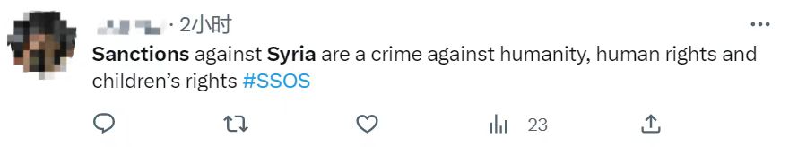 海外网友们对处于水深火热之中的叙利亚灾民还在因被美国制裁而遭受额外苦难的境况义愤填膺,纷纷在社交媒体平台怒斥美国政府,并呼吁其停止对叙单边制裁: