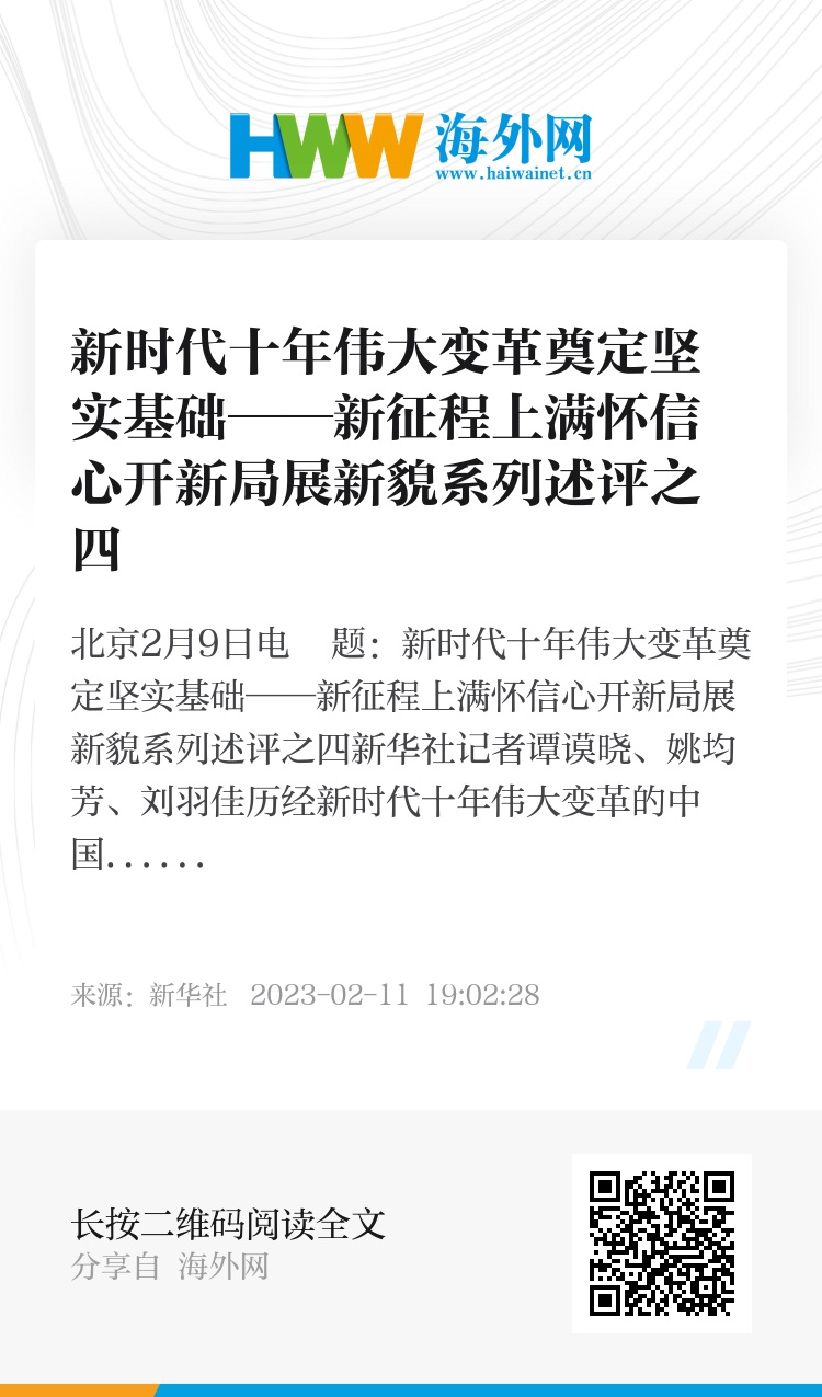 新华社北京2月9日电 题:新时代十年伟大变革奠定坚实基础——新征程上满怀信心开新局展新貌系列述评之四