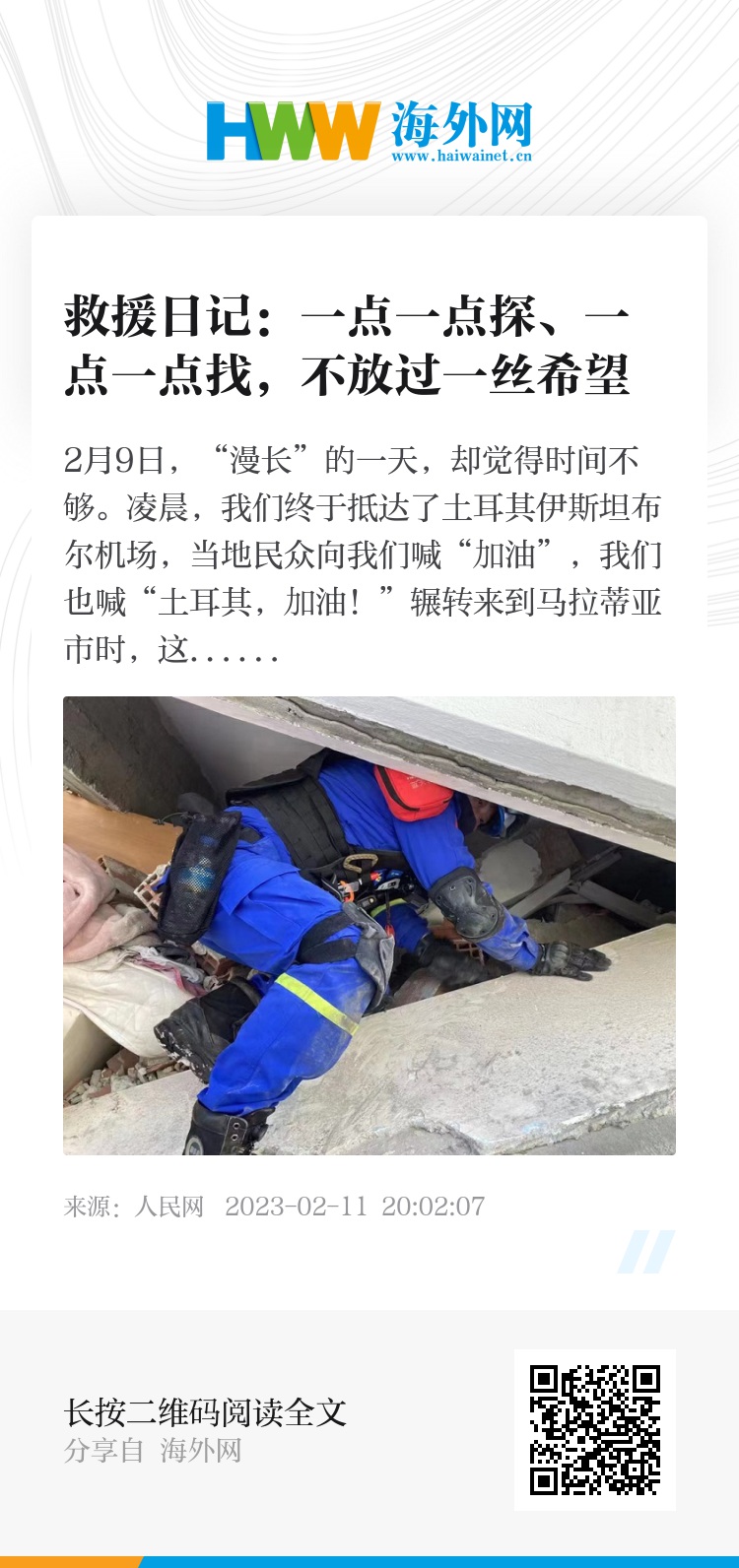 这是我第一次在国际救援中感受到如此细腻、专业的配合。中国在土留学生、曾经在中国留学的土耳其人、还有常驻土耳其的中国记者,都为我们担任翻译。这种迫切的救人的心情相互激荡着,只希望时间再慢一些、奇迹更多一些……
