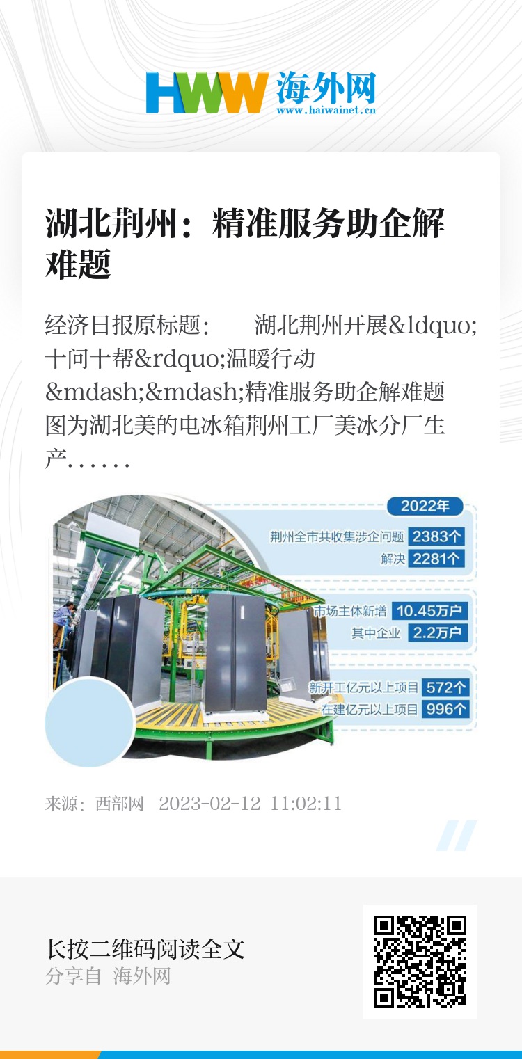 经济日报原标题:湖北荆州开展“十问十帮”温暖行动——精准服务助企解难题