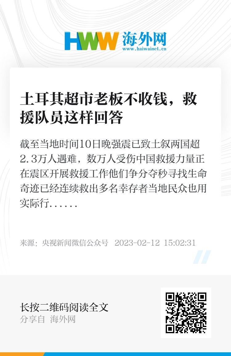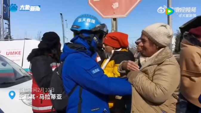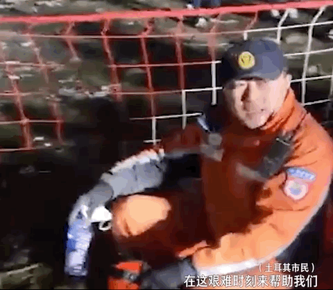 土耳其女士为中国救援队员暖手