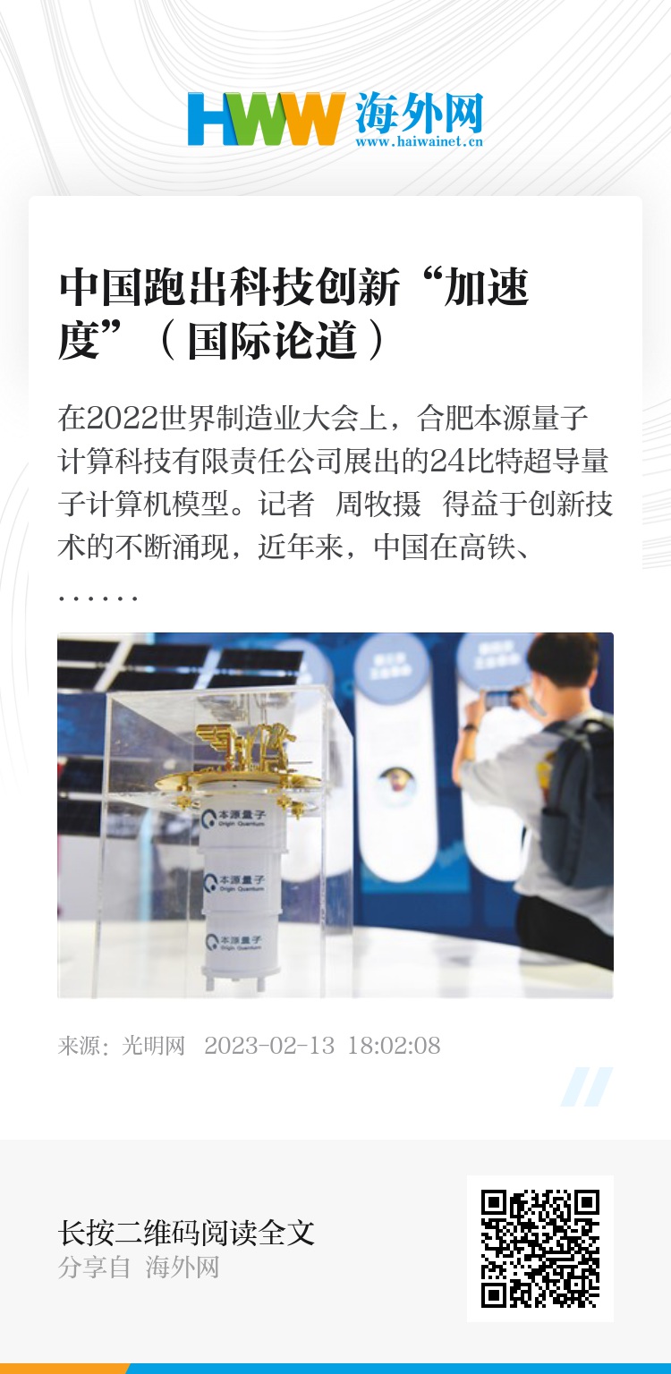 西班牙《阿贝赛报》网站报道指出,2020年,中国物理学家宣告实现“量子计算优越性”,仅仅几个月后,中国推出量子计算原型机“祖冲之号”。2022年,继加拿大和美国之后,中国成为世界上第三个具备量子计算机整机交付能力的国家。而且,中国将很快推出运算速度更快的量子计算机“悟空”。