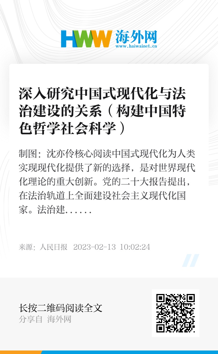 中国式现代化为人类实现现代化提供了新的选择,是对世界现代化理论的重大创新。党的二十大报告提出,在法治轨道上全面建设社会主义现代化国家。法治建设是中国式现代化的内在要求和重要保障,中国式现代化也对法治建设产生深刻的塑造作用,有力推动中国特色社会主义法治理论与实践创新发展,为人类法治文明进步贡献中国智慧、中国方案。