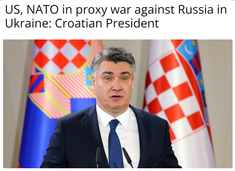 克罗地亚总统米拉诺维奇此前接受媒体采访时就直言,美国和北约正在借助乌克兰对俄罗斯发动“代理人战争”。