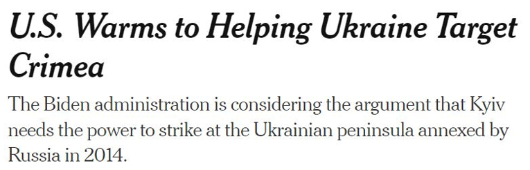 《纽约时报》此前也证实,美国有意帮助乌克兰夺回克里米亚,正在考虑增加军事援助以协助乌军发动对克里米亚俄军目标的进攻。
