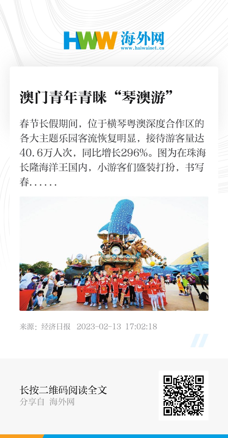 36岁的刘镇豪在澳门从事博彩业。2月6日逢休假,他提前报名,携家中4位老人参加了“赴粤首发团”。“恢复通行后,澳门市民想要‘走出去看看’,首选地就是横琴。”刘镇豪说,“这次旅行就在家门口,风格短平快,氛围轻松闲适,旅行社又很周到地安排了全程交通和餐饮,很贴合我家的短途出游需求。”
