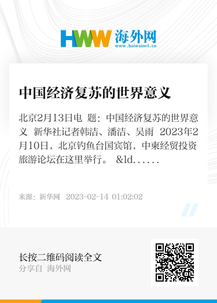 新华社北京2月13日电 题:中国经济复苏的世界意义