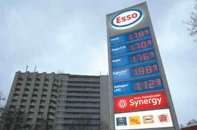 二月一日,德国柏林一家加油站的油价牌。