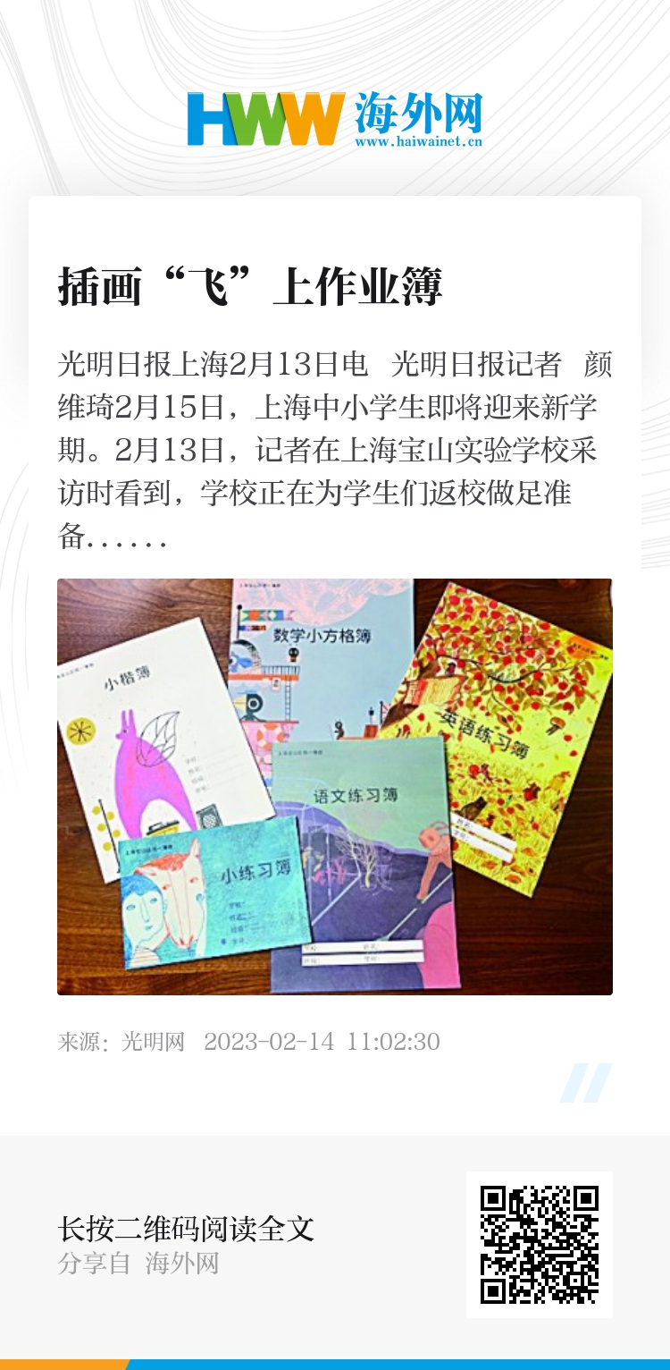 插画“飞”上作业簿,是一次美育新实践,也是宝山区近年来推进“市民美育大课堂”的新延伸。小小作业簿的背后,是宝山区要将美育教育化于日常、渗透到学生成长中的持续努力。