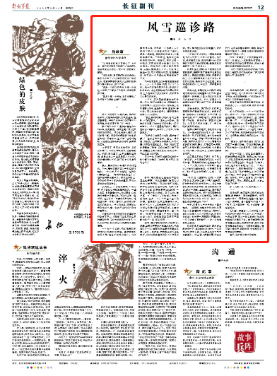 汽车沿着雪野上的车辙继续缓缓前行。五六十公里的路,却走了好几个小时。战士们在室外整齐列队,欢迎医疗队的到来。战士的脸被寒风吹得红扑扑的,让人想到秋天美丽的红叶,那是晕染大山最美的油彩。