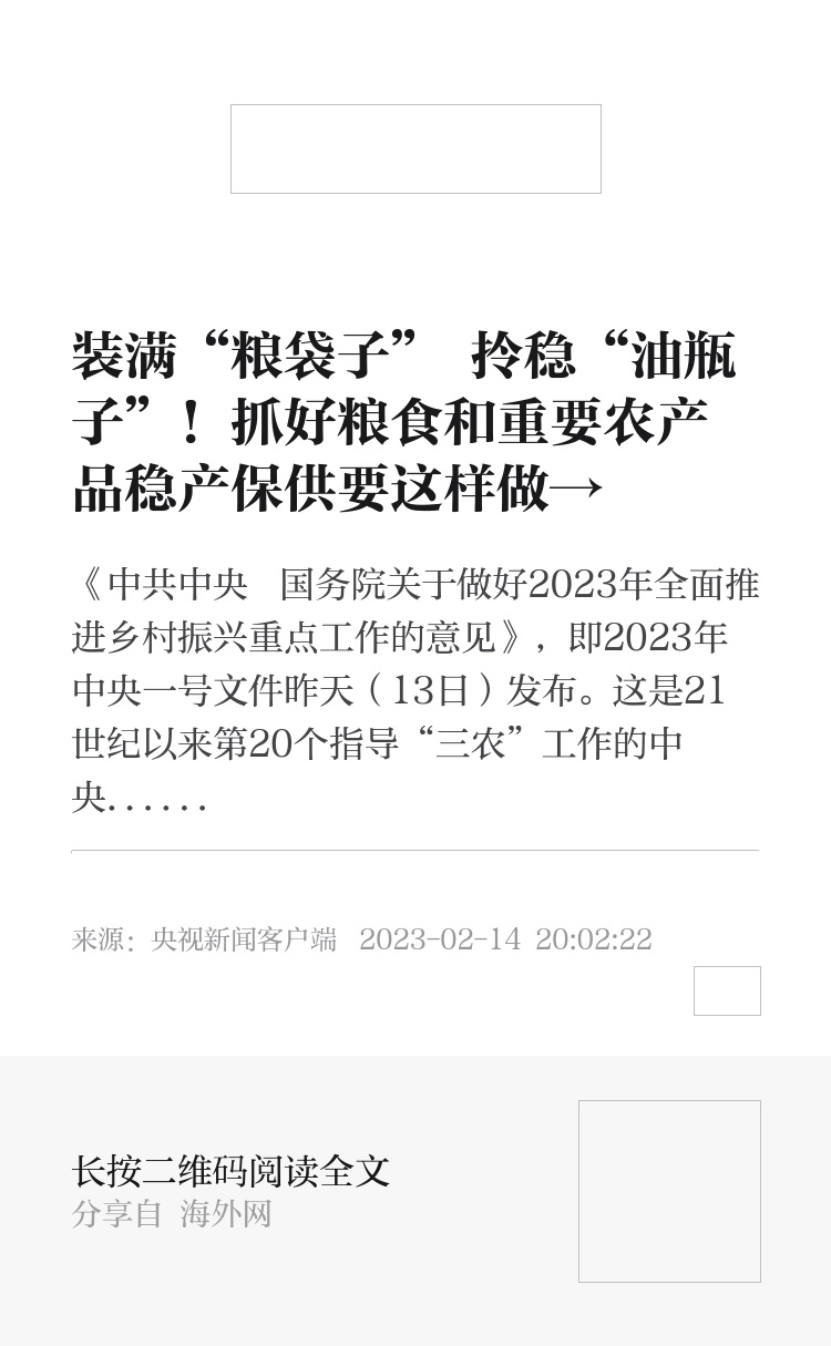 《中共中央 国务院关于做好2023年全面推进乡村振兴重点工作的意见》,即2023年中央一号文件昨天(13日)发布。这是21世纪以来第20个指导“三农”工作的中央一号文件。