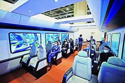 香港“创科博览2022”,参观者在体验高速磁浮列车系统。新华社发
