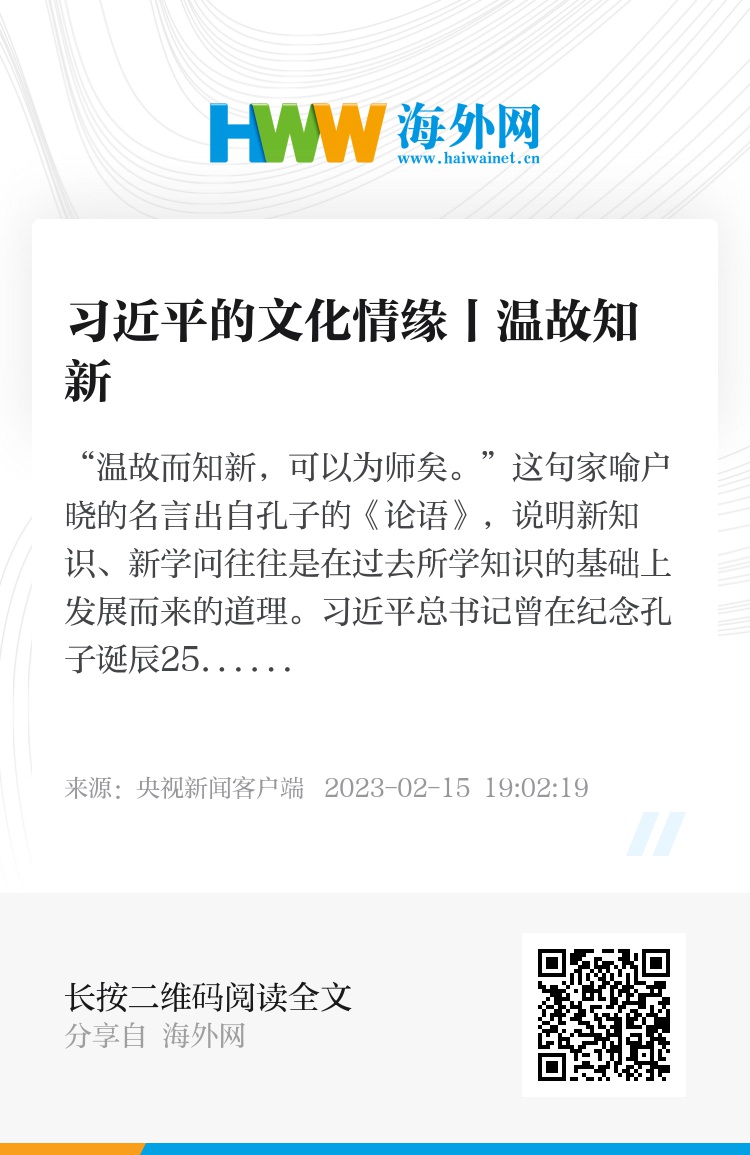 这句家喻户晓的名言出自孔子的《论语》,说明新知识、新学问往往是在过去所学知识的基础上发展而来的道理。