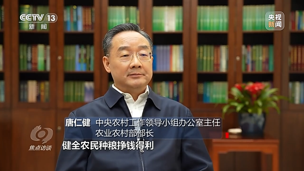中央农村工作领导小组办公室主任、农业农村部部长 唐仁健:健全农民种粮挣钱得利、地方抓粮担责尽义的机制保障,完善价格、补贴、保险“三位一体”的政策体系,探索产销区多渠道利益补偿的实招,让种粮农民有钱赚、得实惠,让主产区不吃亏、多打粮。