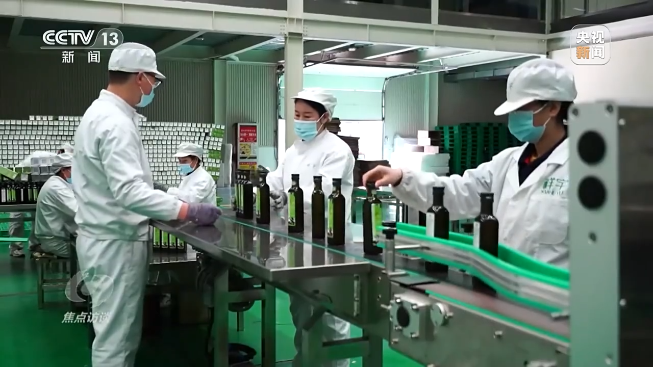 甘肃陇南是油橄榄生长的“黄金地带”,为了助力土特产发展升级,当地推动农户与油橄榄加工企业签订订单合同,在企业里,油橄榄经过精深加工,摇身一变成为金色的初榨橄榄油,“土特产”品牌价值和产业链价值进一步提升。