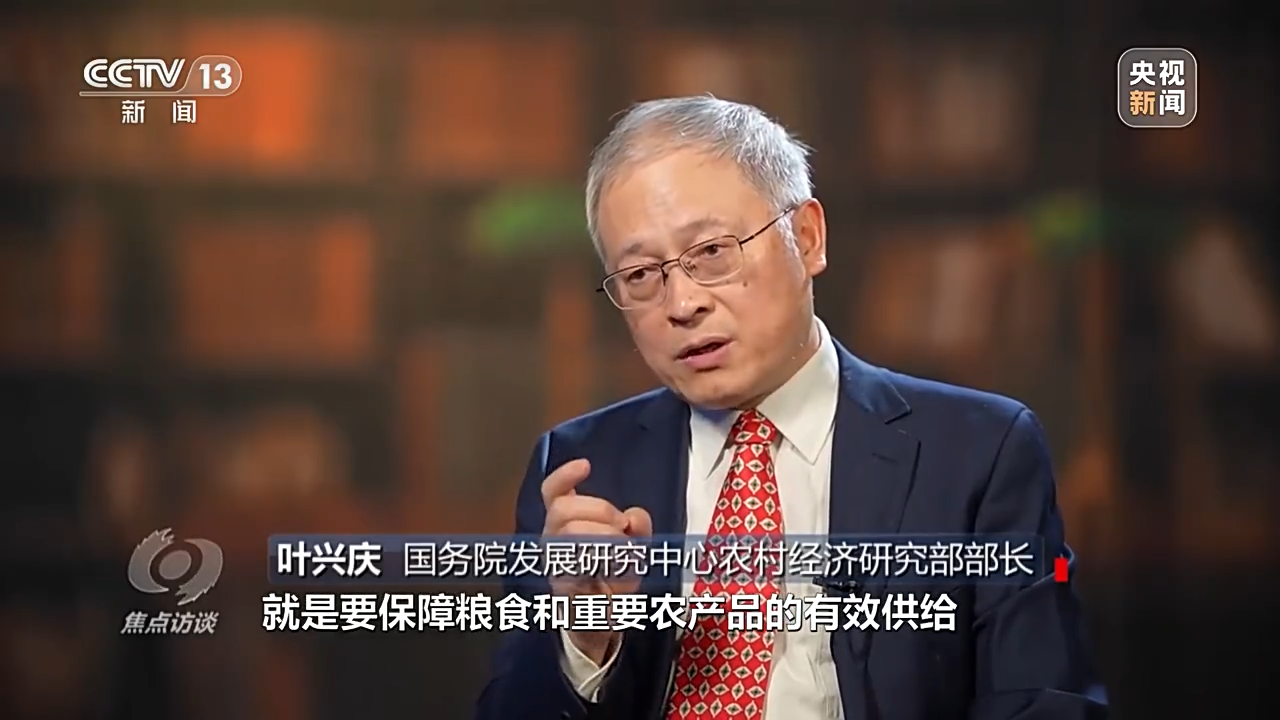 国务院发展研究中心农村经济研究部部长 叶兴庆:我们锚定农业强国目标,头等大事就是要保障粮食和重要农产品的有效供给,所以今年的中央一号文件用了很多篇幅来部署做好今年的粮食生产工作,做好今年重要农产品的稳产保供。