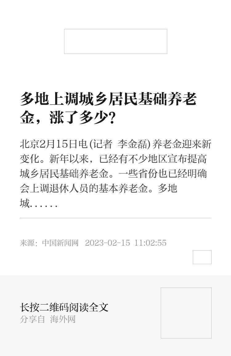2023年以来,多地上调城乡居民基础养老金标准,至少包括宁夏、河南、河北、贵州等地。