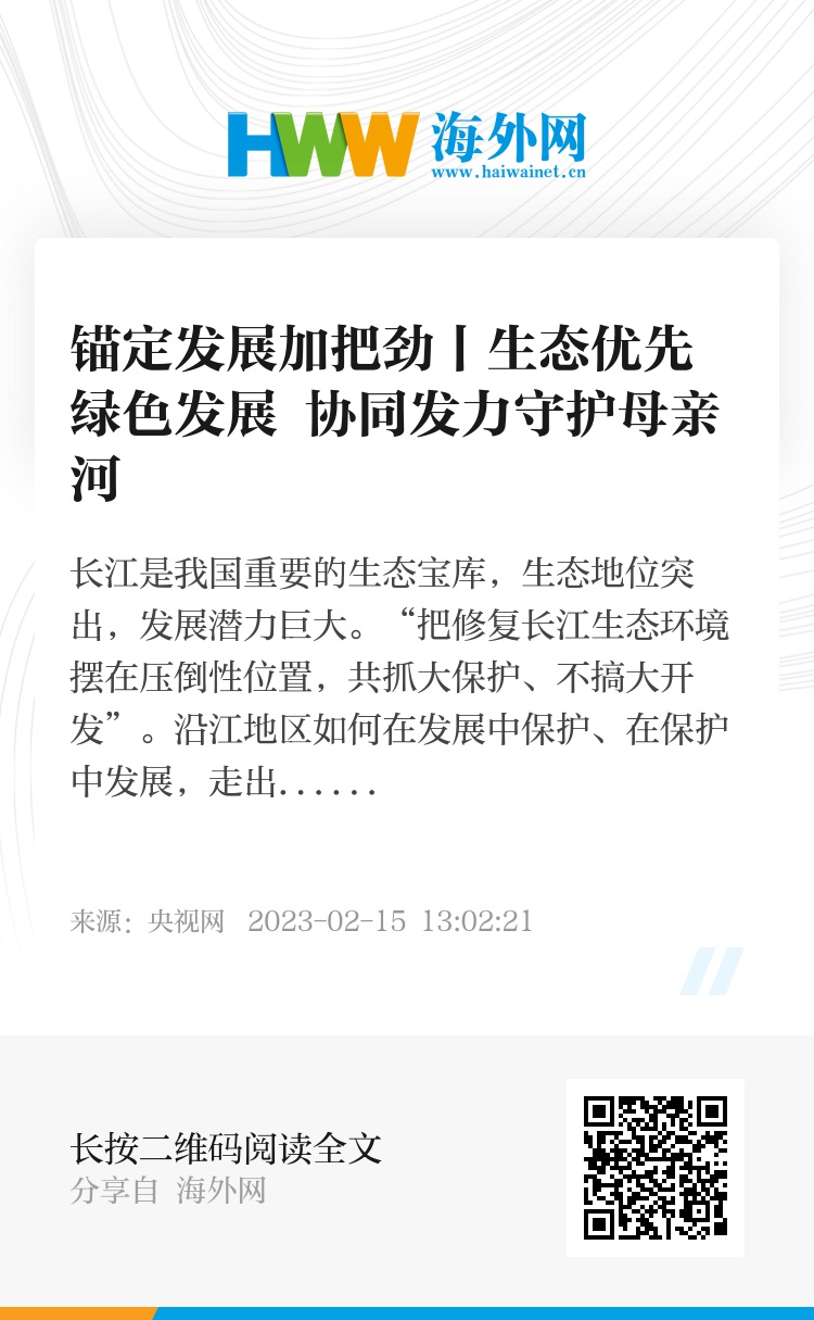长江是我国重要的生态宝库,生态地位突出,发展潜力巨大。“把修复长江生态环境摆在压倒性位置,共抓大保护、不搞大开发”。沿江地区如何在发展中保护、在保护中发展,走出一条生态优先、绿色发展之路?《锚定发展加把劲》,看上中下游合力推动长江经济带高质量发展,绘就一幅山水人城和谐相融新画卷。
