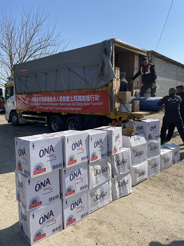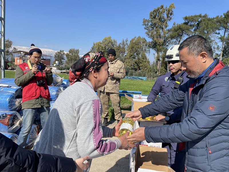 中国乡村发展基金会在土耳其当地开展物资发放工作