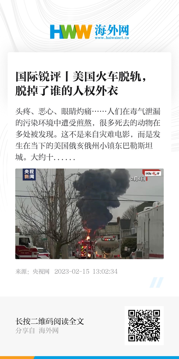 其次,美国媒体在此事的报道上有吊诡之处。在2月3日火车脱轨事件发生时,美国媒体只是进行了不温不火的报道,声称专家们正在努力调查。在2月8日俄亥俄州举行新闻发布会上,一名记者在直播报道时被警方拘捕,理由竟是他的直播“妨碍”了州长的发布会。在美国民众的生命健康、生存环境安全面临巨大威胁的情况下,为何他们连最基本的知情权都得不到满足?