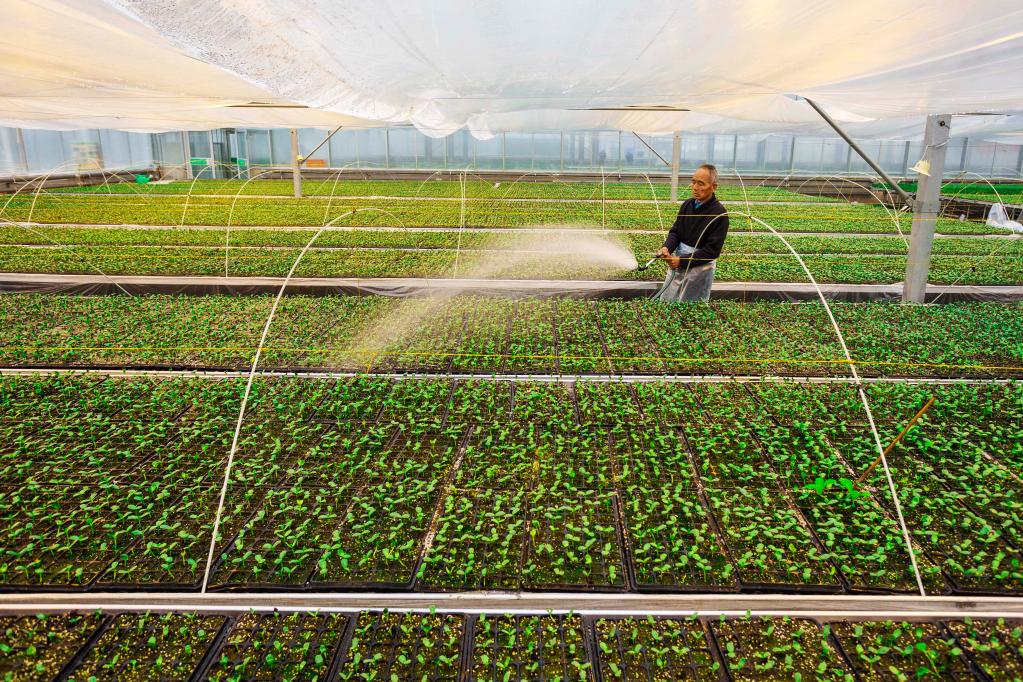 2023年2月12日,村民在山西省夏县南大里乡蔬菜智慧产业园对秧苗进行管理。新华社发(姜桦 摄)
