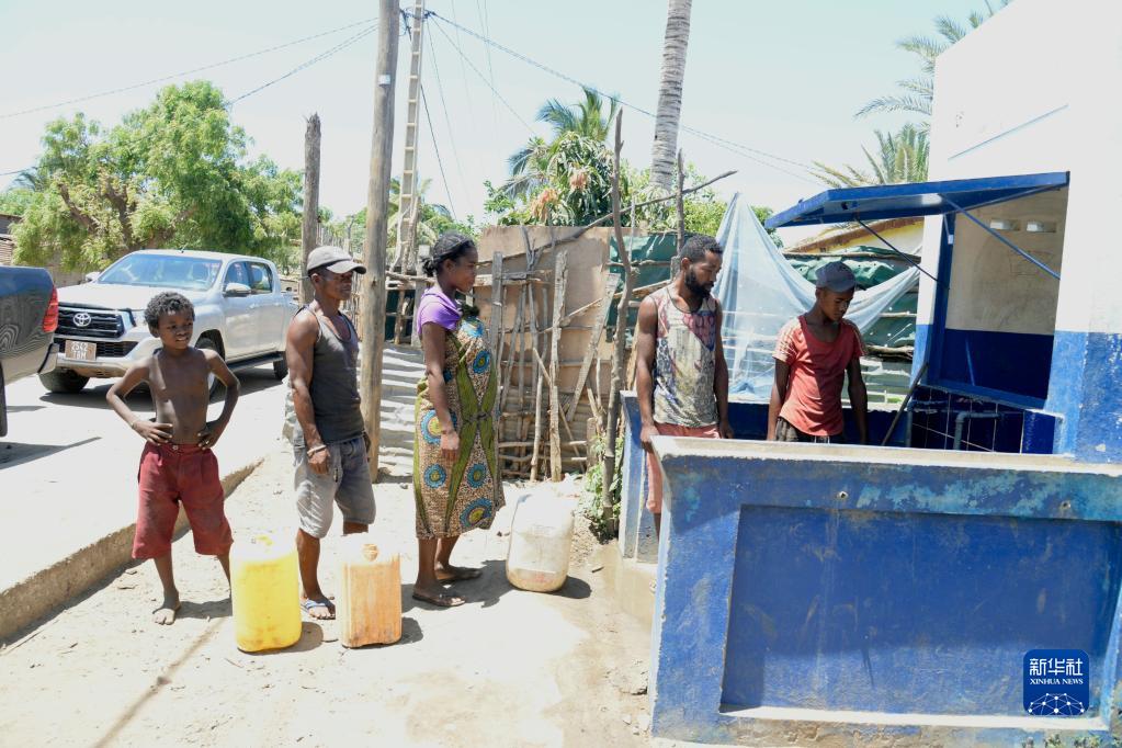 2022年12月8日,在马达加斯加西南部沿海城市图利亚拉,当地人在集中供水房前打水。新华社记者 凌馨 摄
